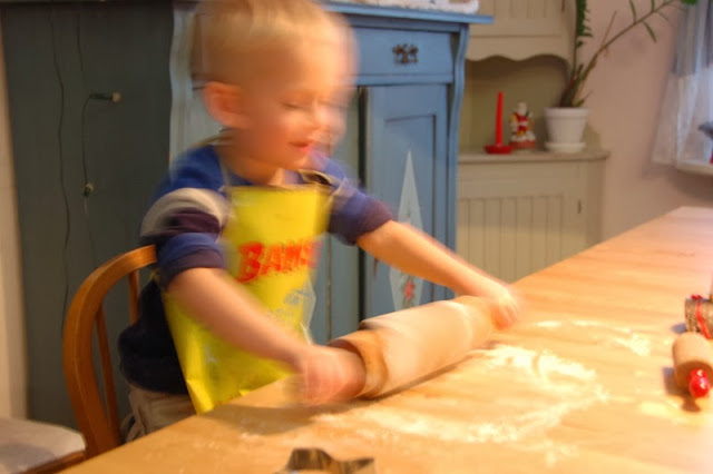 Christmas preparations has begun. I'm planning a few homemade gifts for my youngest. I've already sewn a pair of trousers and I hope there will be one more pair and maybe a sweater. He will also get some bought presents, a fairtrade alphabet puzzle I bought on a church café when he was only a baby and a sledge. He's very much into puzzling these days and playing with his wooden railway and train. Maybe some more parts for it would be suitable for extended family to give and maybe I'll make some things for it myself. I'm thinking about trees, houses and maybe cars, maybe some sort of play scape. But time is limited and I mustn't forget the clutter which unfortunately often comes with more stuff. He's also playing food preparation games and eating games a lot but we've already got enough of things to support his play in that area in my opinion. And maybe the train parts that he's already got is enough too.